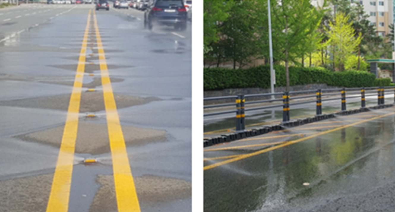 도로에 물을 자동 분사하여 도로 미세먼지 저감 및 여름철 도심 열섬현상 완화,